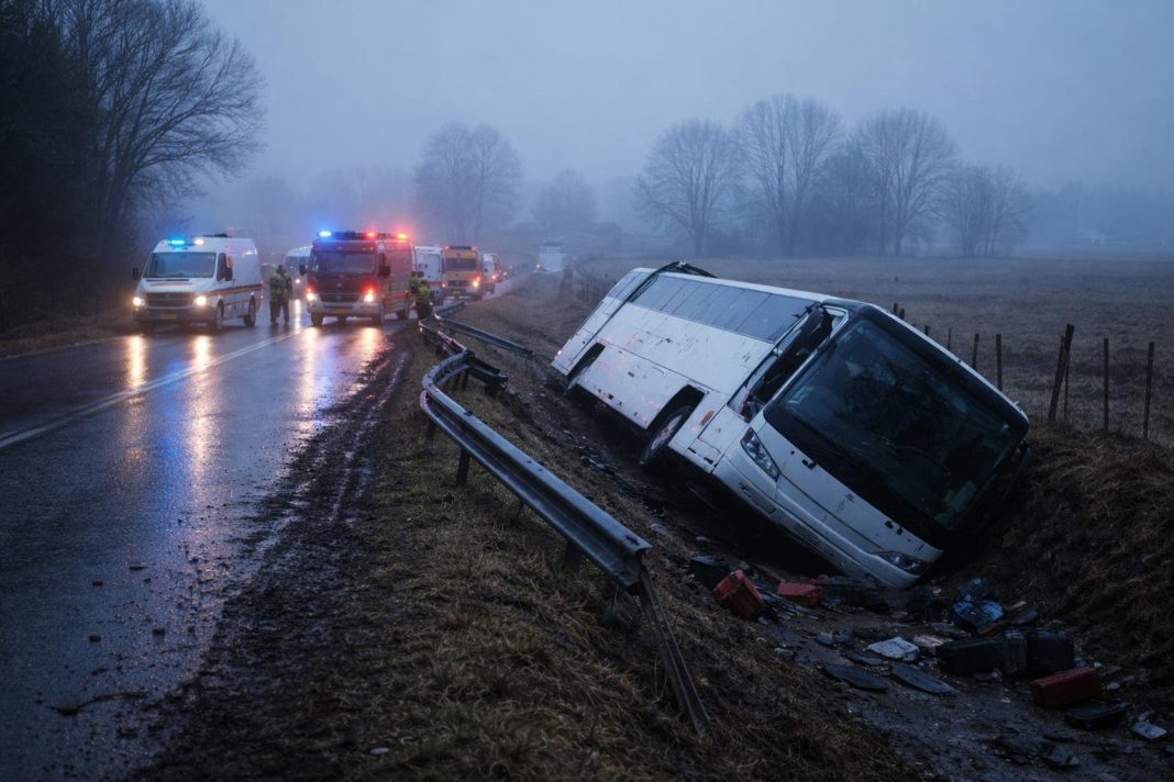 Dimineața de 21 martie 2026 a fost marcată de un grav accident rutier între Tutova și Priponești, la limita județelor Vaslui și Galați. Un autocar cu destinația București, din Chișinău, a fost implicat într-un incident în jurul orei 04:15, răsturnându-se în afara părții carosabile.