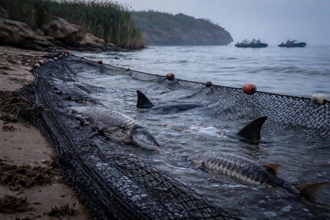 Plase ilegale în Marea Neagră: capturi de 6 sturion, 5 delfini și 1 rechin, anchetă pentru BRACONAJ