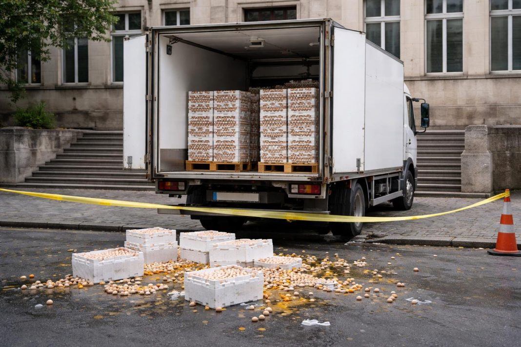 La Vaslui, Direcția Sanitar-Veterinară și pentru Siguranța Alimentelor (DSVSA) a pus sub sechestru un camion cu aproximativ 66.300 de ouă, destinate, cel mai probabil, unei ferme din zona Bârladului. Anunțul a fost făcut de directorul DSVSA Vaslui, dr.